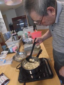 皆様にゼリー作りと白玉を捏ねて丸めて茹でる作業を手伝ってもらいました♪