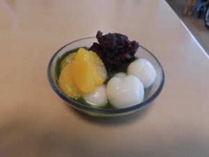 最後は白玉・果物・あんこをトッピングして完成です!!