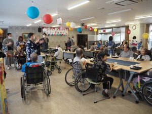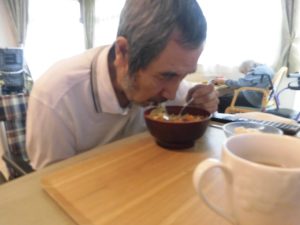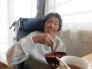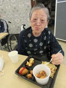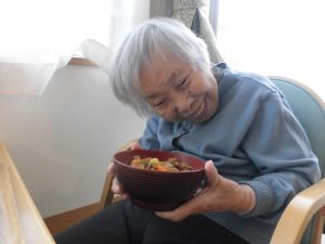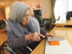 入居者の皆様には、野菜を切る作業を手伝ってもらいました♪