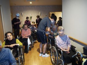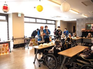 入居者様に少しでもお祭り気分を味わっていただくために、職員は浴衣や甚平で参加しました♫