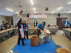 入居者様も職員と一緒に重たい杵を持ち上げ「 ぺったん! ぺったん!! 」とついてくださいました♫