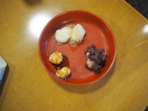 つきたてのお餅は「 みたらし・あんこ・からみ 」で味付けしていただき「 つきたてのお餅はおいしいね~♪ 」