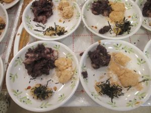 できあがったお餅は「 辛味・あんこ・きな粉 」に味付けし美味しくいただきました(^_^)