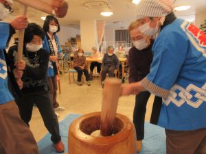 利用者の皆様と毎年恒例の餅つき大会を行いました!!