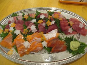 「 まぐろ・ぶり・サーモン 」など豪勢なお刺身を用意しました♪