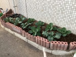 イチゴ畑だった花壇に、キャベツとブロッコリーの苗を植えました!!
