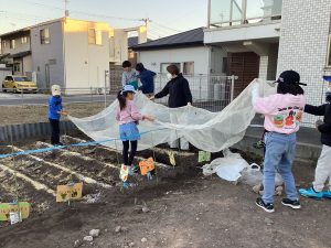 さつまいも畑だったところは、土を掘り起こし畝を作り「 ほうれん草・小松菜・ニンジン・たまねぎ