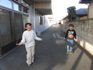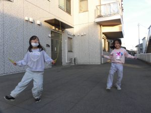 外では、時間ギリギリまで鬼ごっこやコマ、縄跳びに夢中です!!