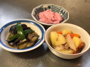 ご自宅にある食材を利用して「 茄子とピーマンの味噌炒め・肉じゃが 」を利用者様とご一緒につくりました♪