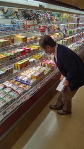 お店では買物リストで品物と値段をよく確認しながら購入する品を選んでいきます。