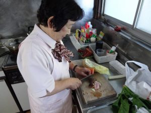 野菜は利用者様が食べやすいよう小さく切り、柔らかく煮込みます。