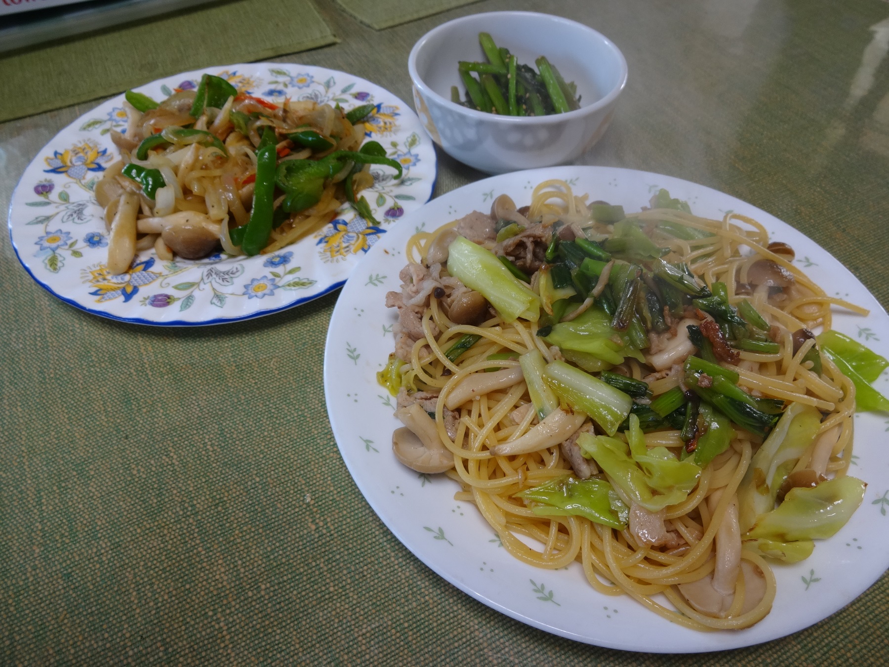 ☐和風パスタ・野菜炒め・カブの葉の炒め煮