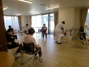 当施設のデイサービスホールにて、高玉真光理事長による「 新型コロナウイルス・インフルエンザ予防対策 」