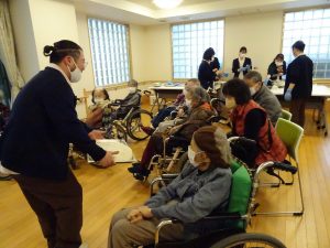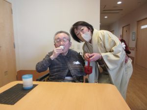 今年は佐藤医師と奈良相談員が華やかな着物姿で、入居者の皆様に新年のご挨拶をかねて