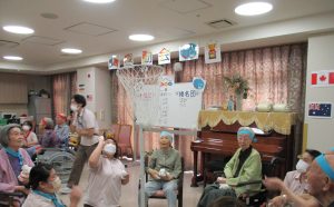 ラジオ体操の後に入居者様代表による力強い選手宣誓が行われ、榛名団と赤城団に分かれて競い合いました♪