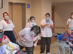 また、今年は職員による飴食い競争も行い、粉だらけの顔を見て「 最高~♪ 」と一同大盛り上がり!!