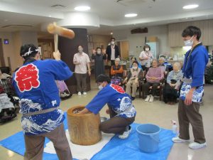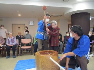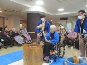 「 ヨイショー! 」「 ドッコイショー!! 」の大きな掛け声と、お餅をつく迫力の音が施設に