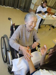 入居者様に「 手のマッサージ・メイク・ネイル 」を行っていただきました。