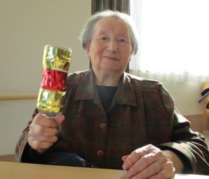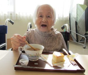 甘いお菓子と美味しいコーヒーを堪能した入居者様は食後に迫力満点のだんべぇ踊りを一緒に