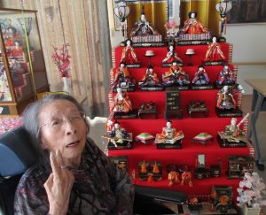 子供のようにキラキラ輝いた目で優しくお雛様を見る入居者様とお人形さん達は、なんだか会話をしている