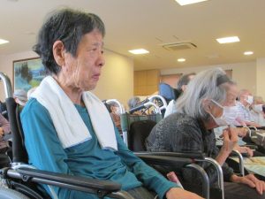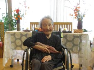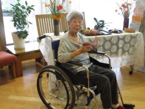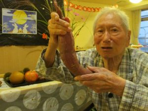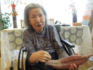 入居者様が手に持っている「 さつま芋 」は施設5階の菜園で入居者様と職員で大切に育てた