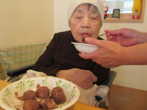 つきたてのお餅はあんこで味付けし召し上がっていただき「 美味しいね~♪ 」「 柔らかいね~♫ 」
