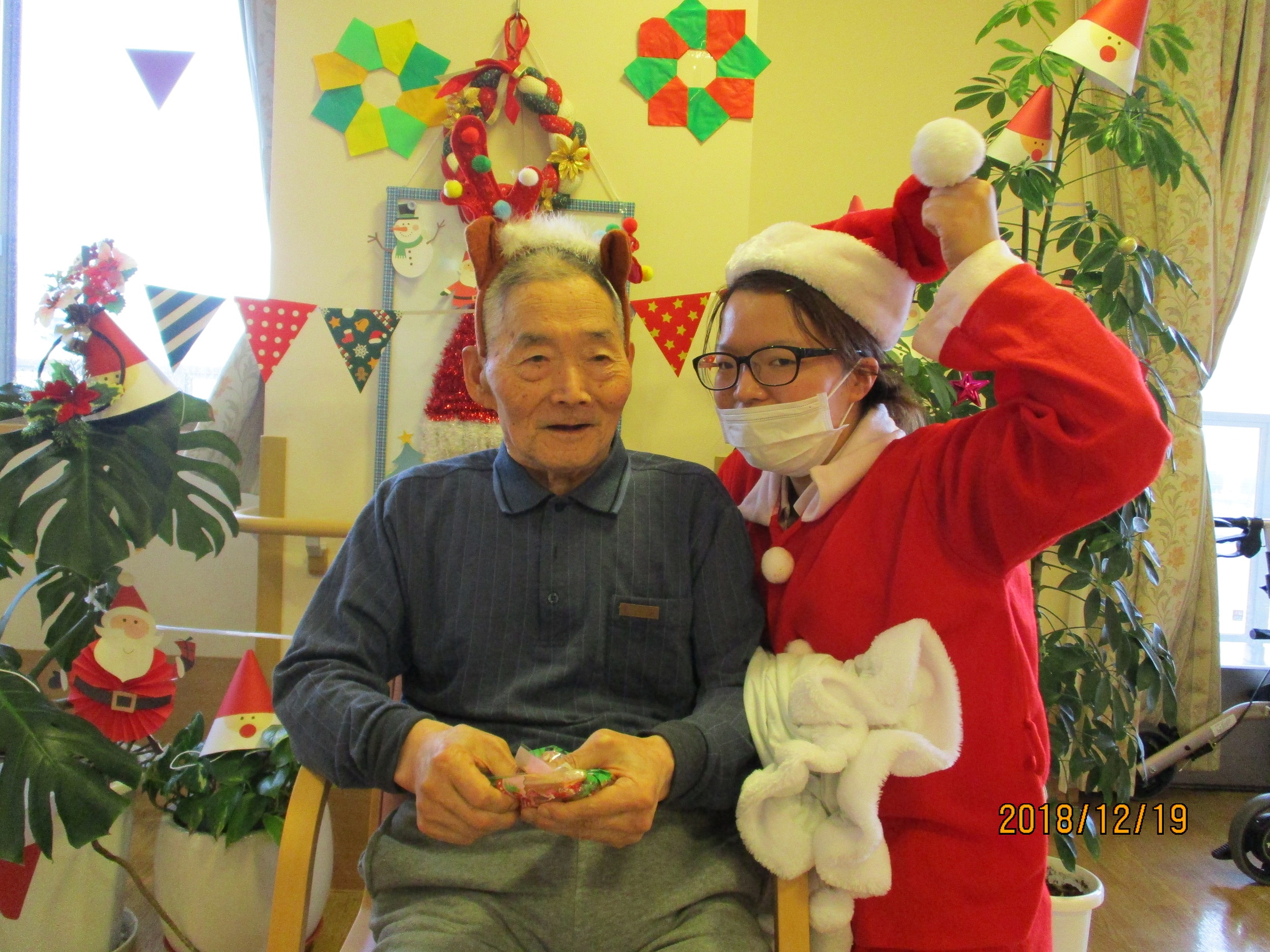 サンタクロースやトナカイに扮装した職員がクリスマス気分を盛り上げます♫