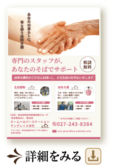 サングレイス本町tel:0272434165/機能訓練特化型デイサービスtel:0272212525/ホームヘルパーステーションtel:0272438343
